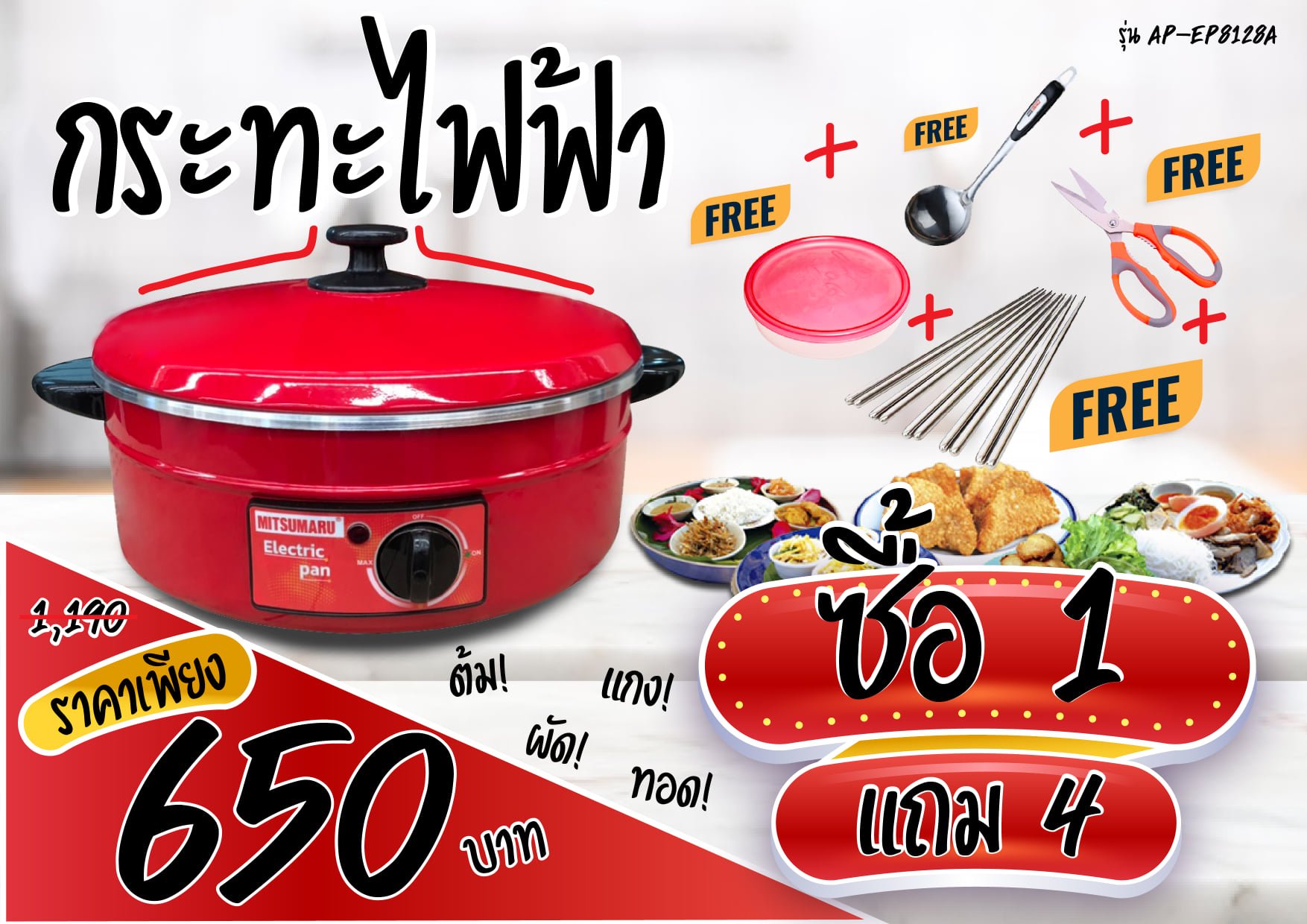 หม้ออเนกประสงค์ หม้อไฟฟ้า ขนาด 4.5 ลิตร สแกนคิวอาร์โค้ดรับประกัน 2 ปี พร้อมมี มอก.